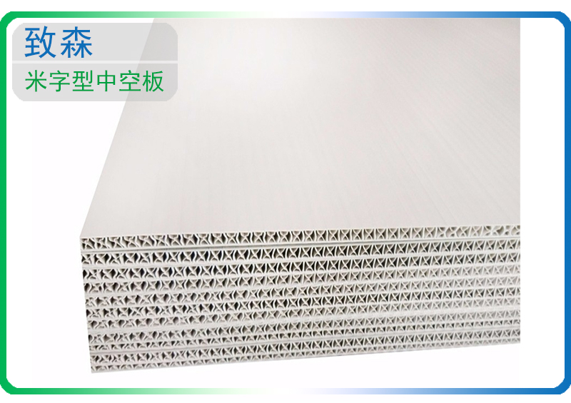 米字型中空板的橫截面結構相似一個米字,因為立筋的支撐結構,比普通的格子狀的中空板更具有承重能力,同樣厚度的兩款板材中,米字型中空板的承重能力會是格子狀中空板的十倍。所以米字型中空板一般是可以用作承放厚重物品的墊板,或者是做成圍板箱,承壓能力特強。