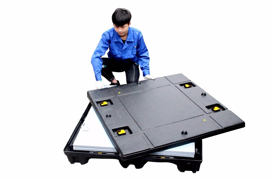 4.運輸時可將圍板折疊起來擺放在托盤上,大大地減少貯運體積,有效的降低運輸成本。
